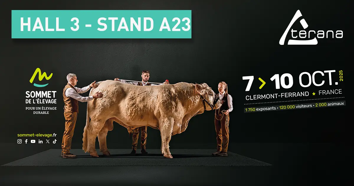 Pour la 7e année consécutive, TERANA sera présent au Sommet de l'élevage du 7 au 10 octobre 2025 à la Grande Halle d'Auvergne à Clermont-Ferrand. C'est LE rendez-vous international et incontournable de l'élevage en Europe.